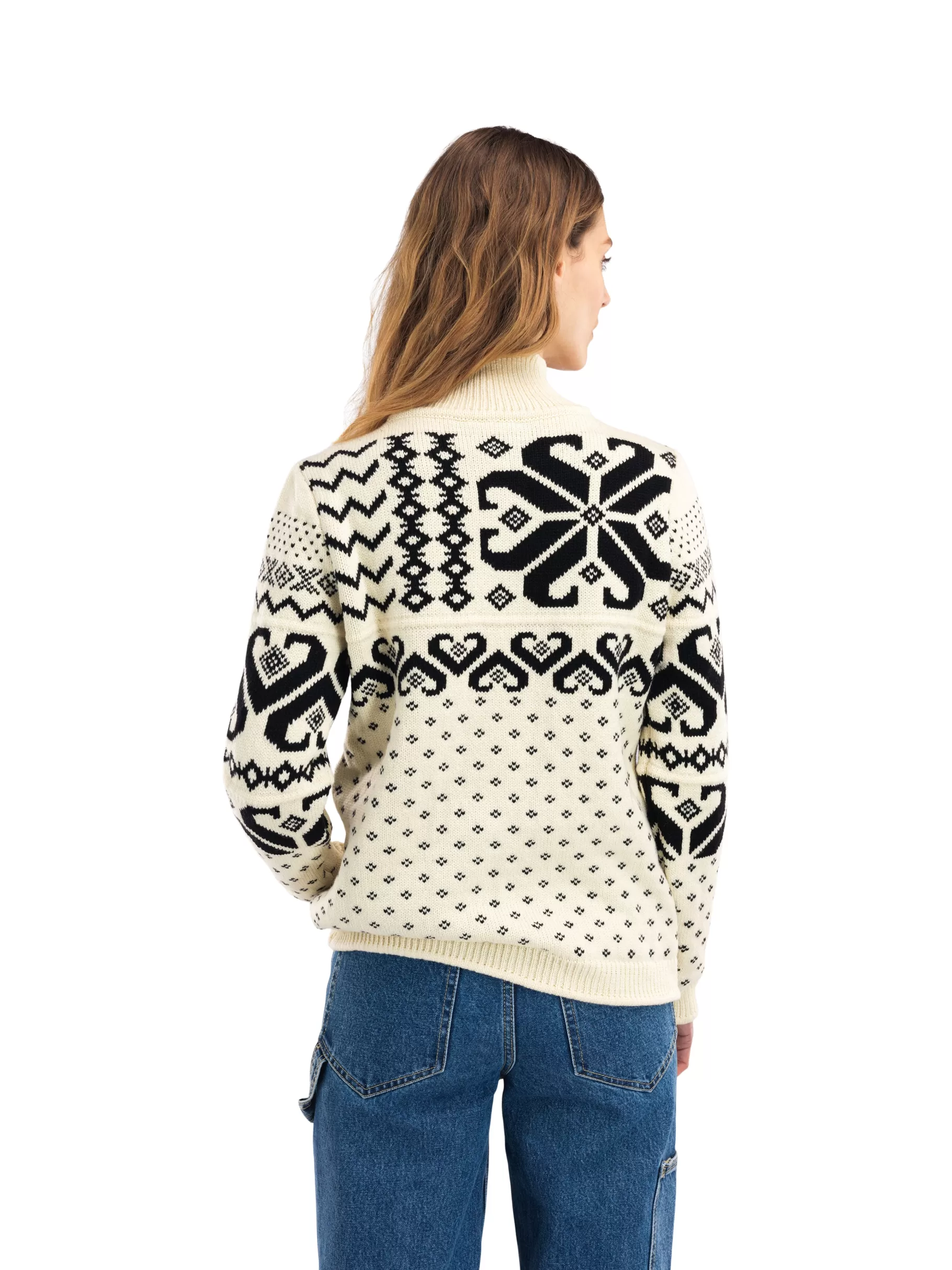Patchworkgenseren Fannaraki Tar Inn Flere Elementer Fra Forskjellige Historiske Dalemonster Gjennom Tidene. Patchworkmonsteret Er Sammensatt I Ulike Størrelser For A Gi Den Et Oppdatert Preg. Genseren Har En Smal Passform Og En Opphevet Struktur Gar Over Brystet Og Ermene.