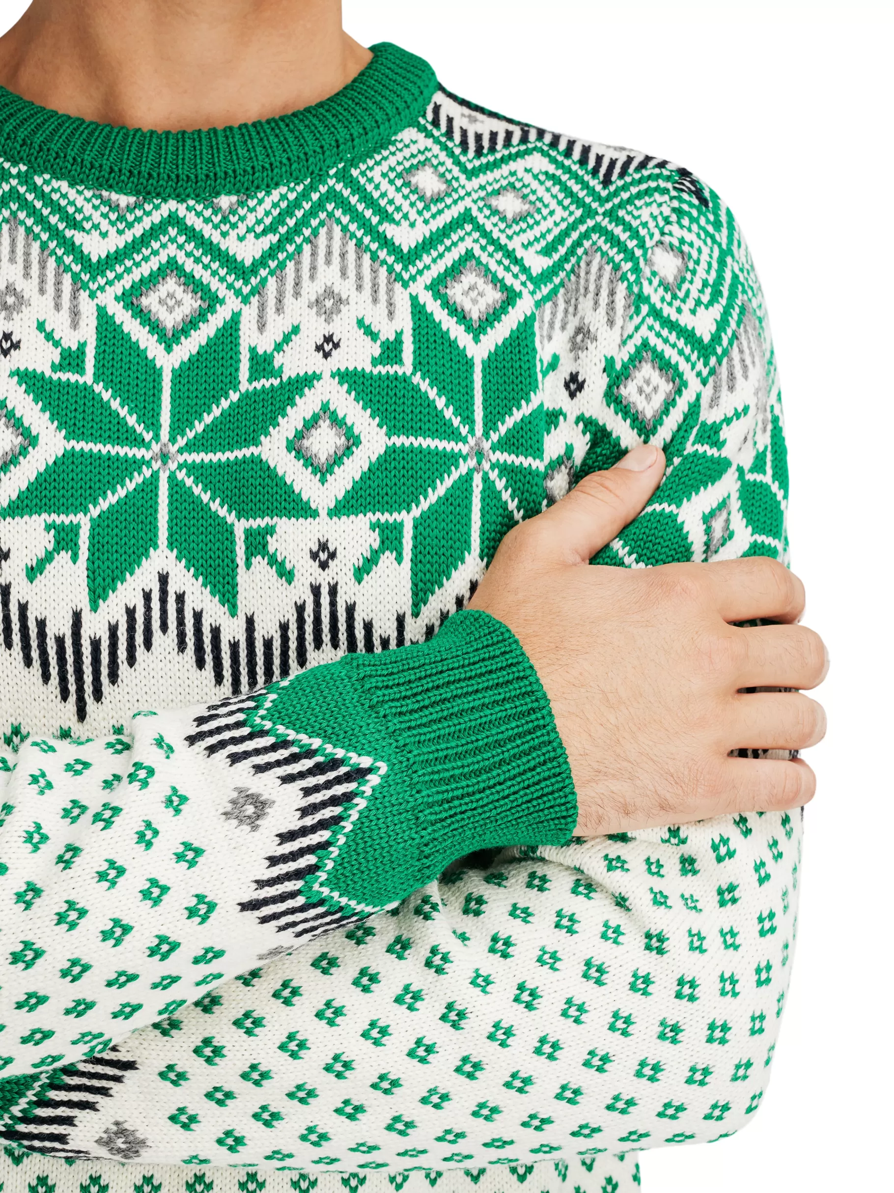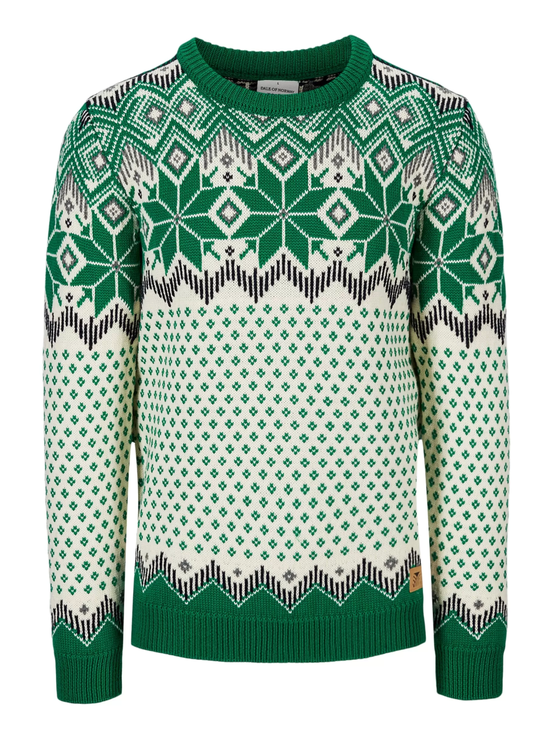 Designelementene Er Forstorret Og Bestar Av Den Klassiske Norske Attebladrosen, Korset Fra Setesdal- Og Cortinamonsteret, Samt Lusemonsteret. Genseren Er Strikket I 100% Ull Med Lang Holdbarhet.